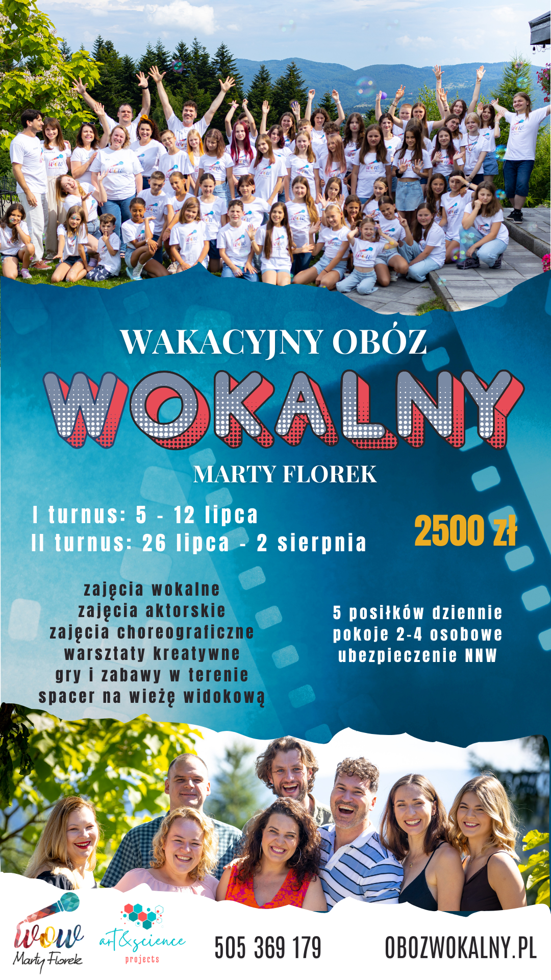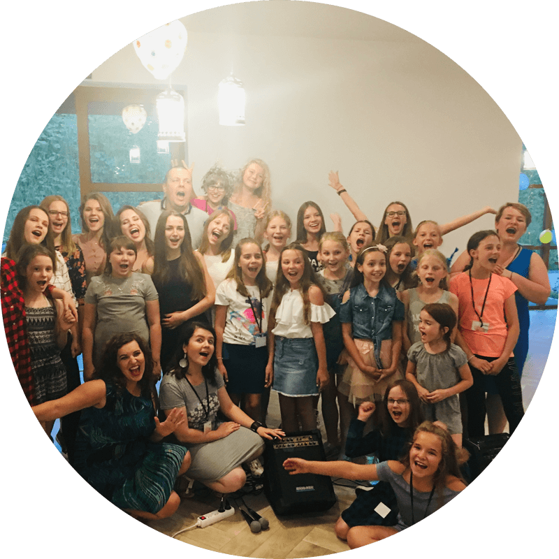 Zajęcia wokalne są głównym punktem programu każdego dnia naszego obozu. Rozpoczynają się od rozśpiewki, podczas której wykonywane są ćwiczenia oddechowe, dykcyjne a także ćwiczenia z emisji głosu i artykulacji. Uczestnicy są podzieleni na grupy (10-15 osobowe), co korzystnie wpływa na ich komfort i aktywność na zajęciach oraz pozwala na korygowanie błędów przez trenera. Podczas zajęć Uczestnicy uczą się wybranych przez trenerów piosenek w języku polskim i angielskim, śpiewając w wielogłosie a także solo. Uczestnicy prezentują również swoje ulubione utwory, nad którymi pracują razem z trenerem.